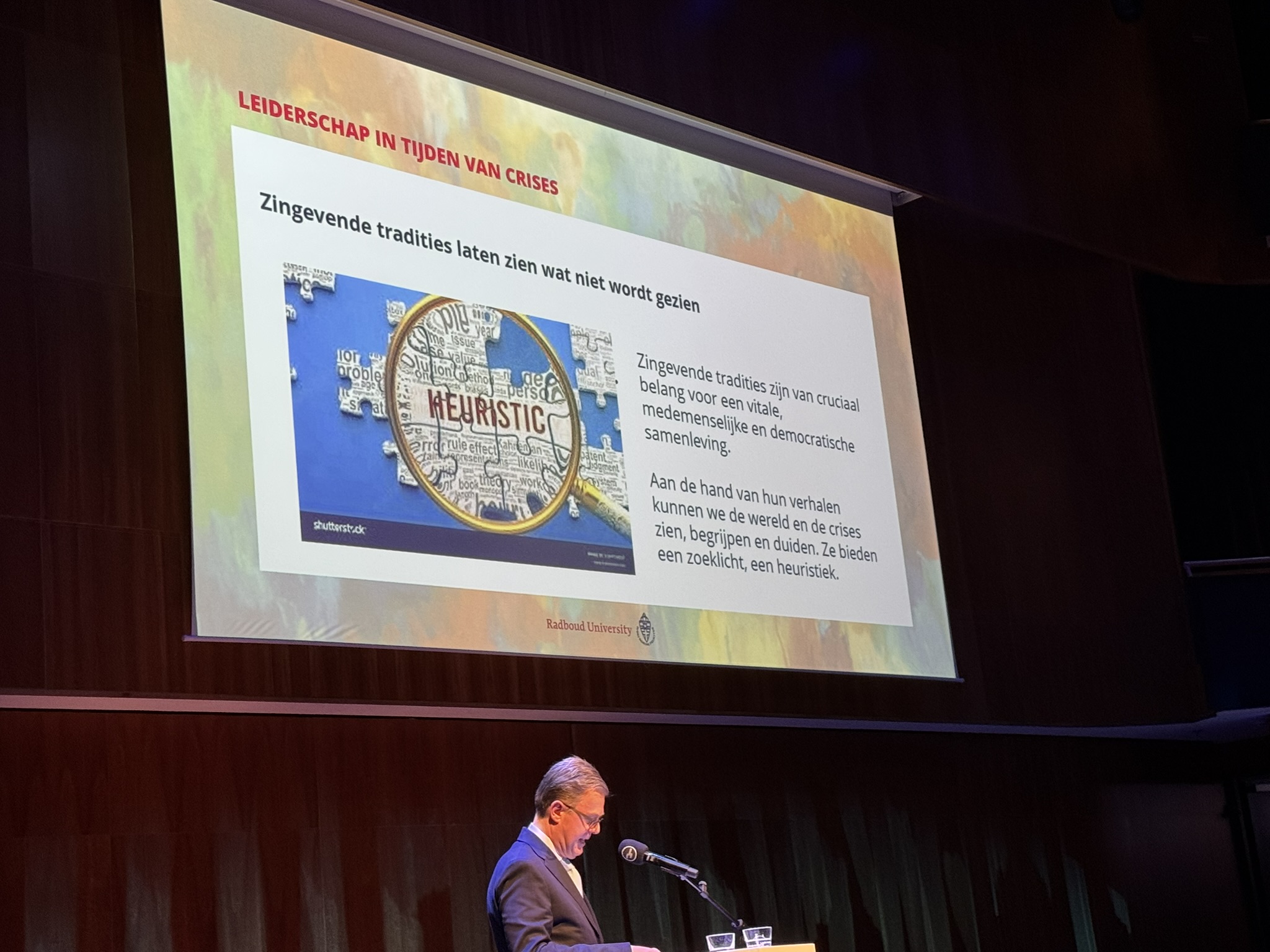 Tijdens de bijeenkomst gaf Prof. Dr. Theo van der Zee, Bijzonder Hoogleraar Onderwijs vanuit Ethisch en Religieus Perspectief aan de Radboud Universiteit te Nijmegen, een inspirerende lezing over de huidige vormen van leiderschap en hun impact op de samenleving. Hij onderzocht waarom de behoefte aan sterke, directe leiders zo groot is en welke alternatieven er mogelijk zijn. Door inspiratie te putten uit diverse zingevingstradities liet hij zien hoe leiderschap ook kan worden vormgegeven op een manier die mensen versterkt, verbindt en richting geeft.